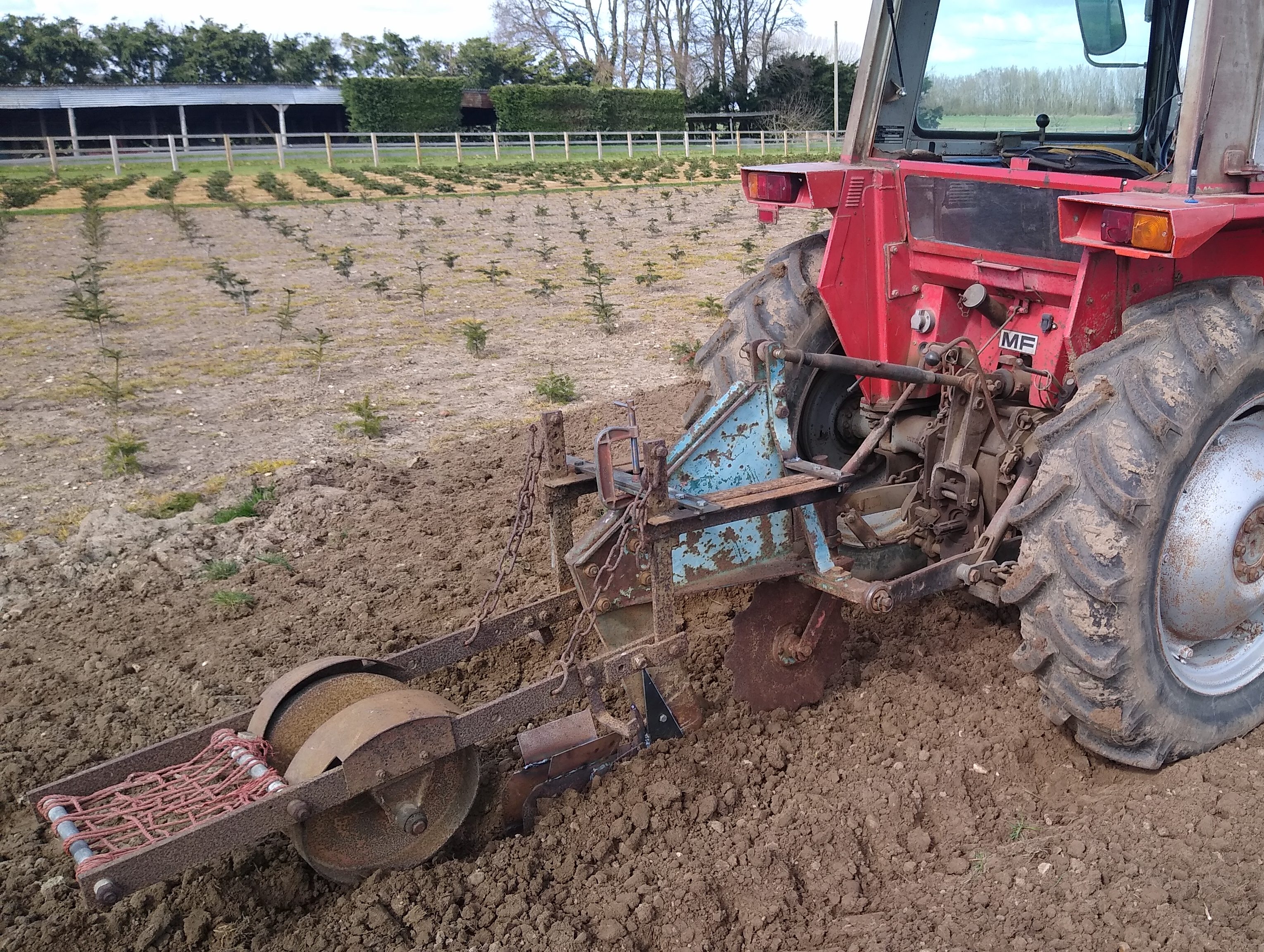 The ground had been ploughed in November and left over the winter, last year we made the mistake of pulling it down behind the plough leaving us a very wet piece of ground come spring, so this year we left it ploughed over winter. Then last weekend we were lucky enough to have the use of a neighbours New Holland T7 to help break up the ploughing and preparing the ground for plants. This left us with loose ground that would be easier to plant into.