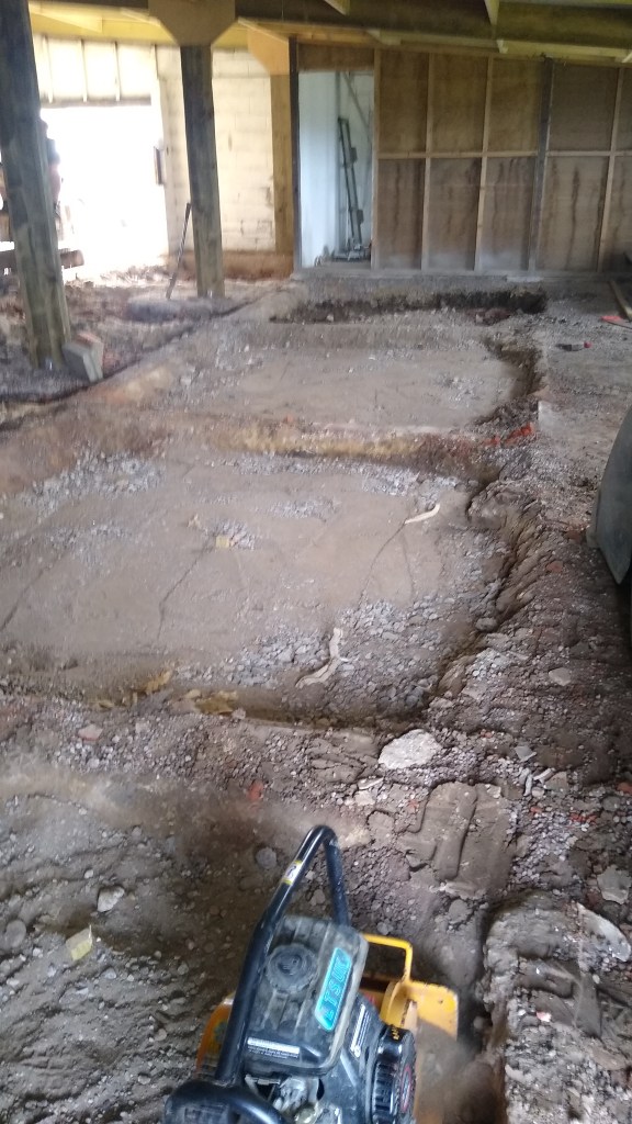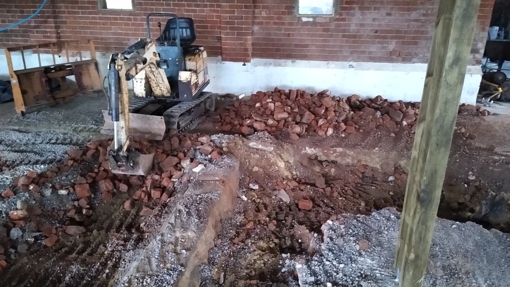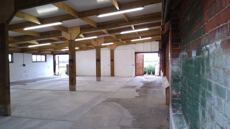 Over the past few weeks, the new floor has been laid in the middle. The outsides have been repaired (due to the concrete wearing down during its life as a pig shed). The floor at least is now ready for its use through the year to keep all of our equipment for looking after the trees and to allow a trip free experience for everyone visiting come November!